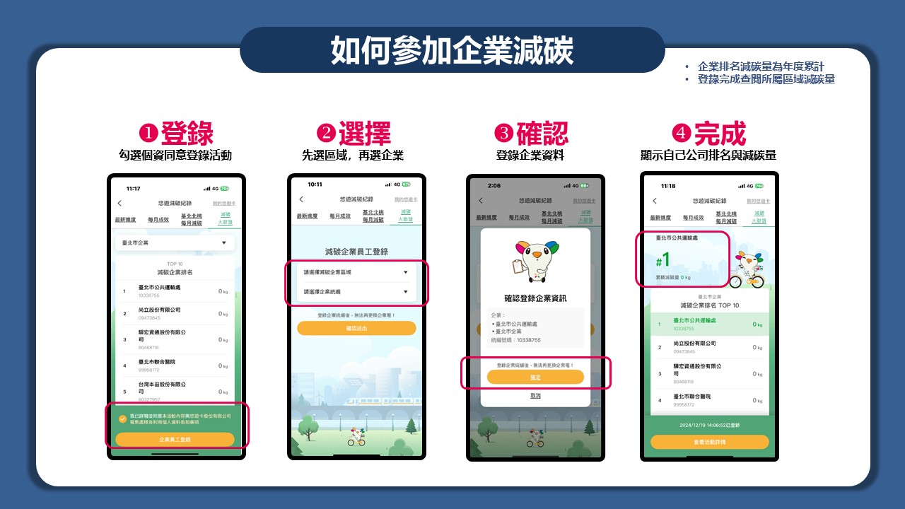 三、 | 114年更擴大開放基北北桃四市企業、機關及學校共同參與「減碳大聯盟」,各市累積減碳量前5名單位可獲表揚,請鼓勵所屬員工參與(活動加入步驟如附件1及附件2),如有意願請至連結(https: //http://www.surveycake.com/s/Q23qL)填妥相關資訊加入響應。 |