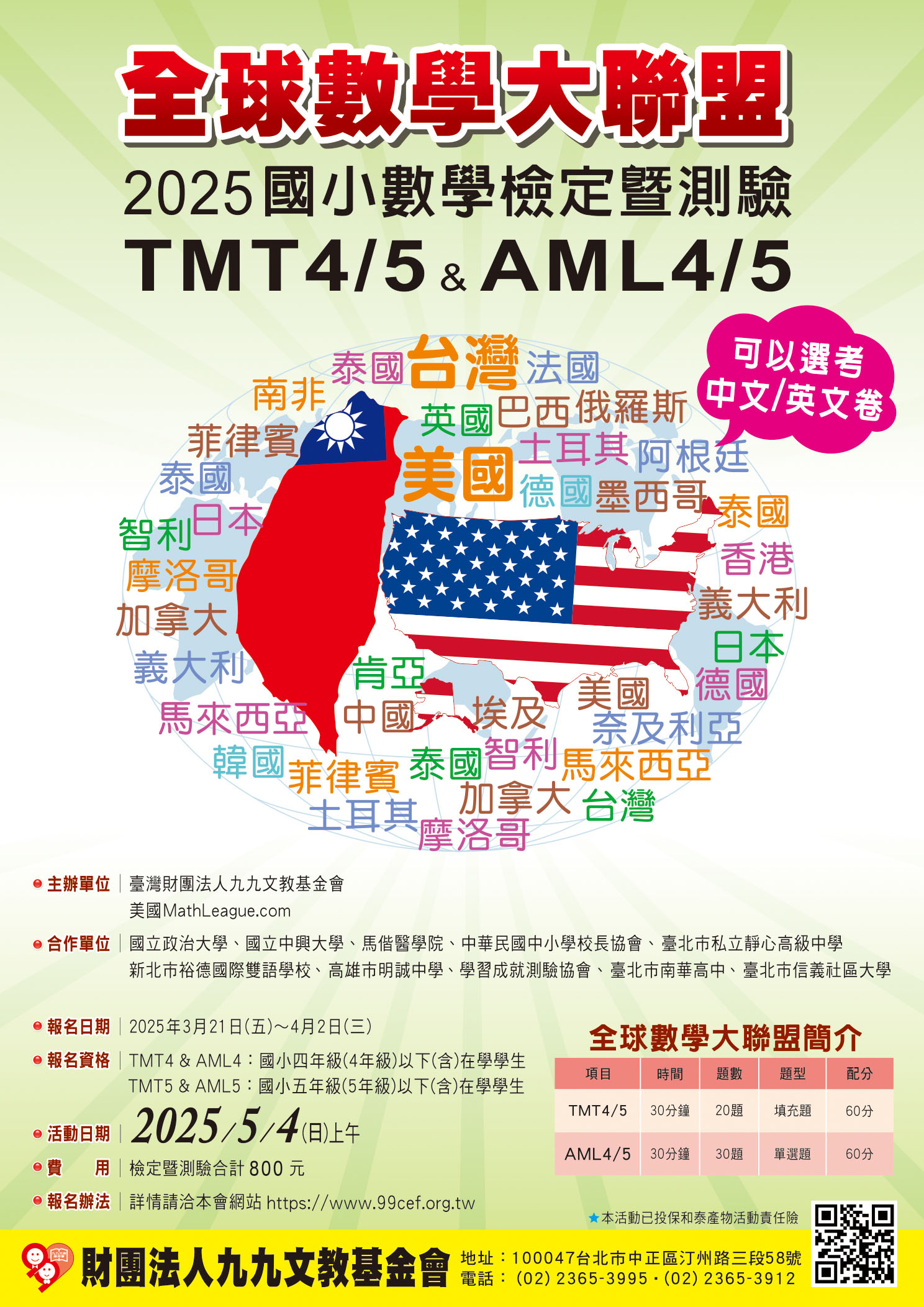 (二) | AML為美國MathLeague.com所主辦之國際檢測。 |