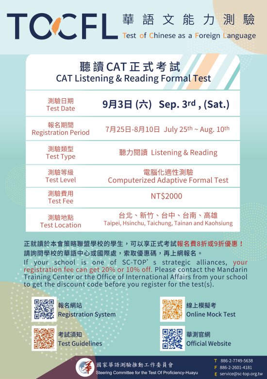 一、 | 依據國家華語測驗推動工作委員會(以下簡稱華測會)111年8月2日華測字第1112000092號函辦理。 |
